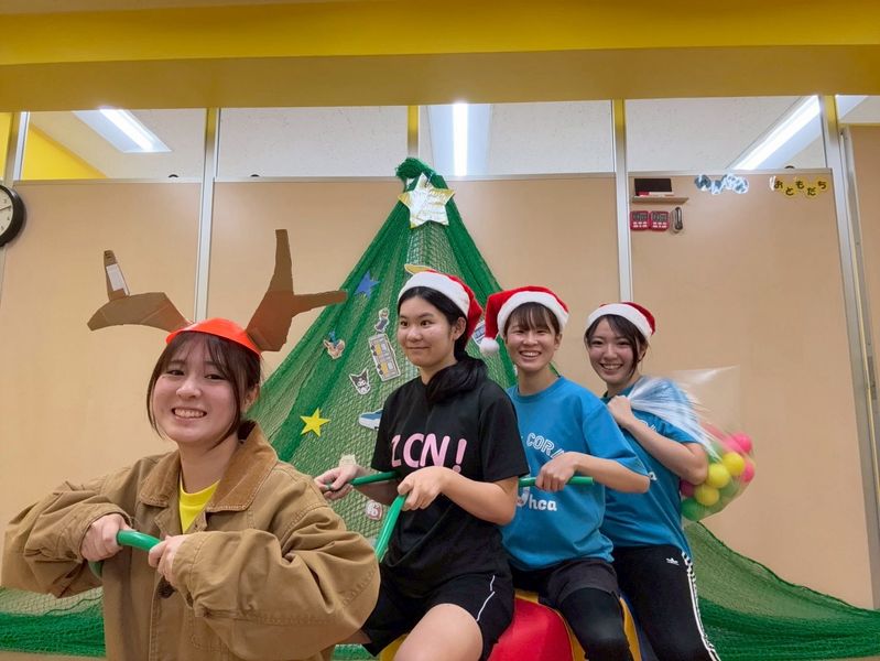 ↓ツリーの前でトナカイ&サンタに変身!(子どもたちのもとへ向かおうとしてくれている一番前のサンタさんに注目です☻)