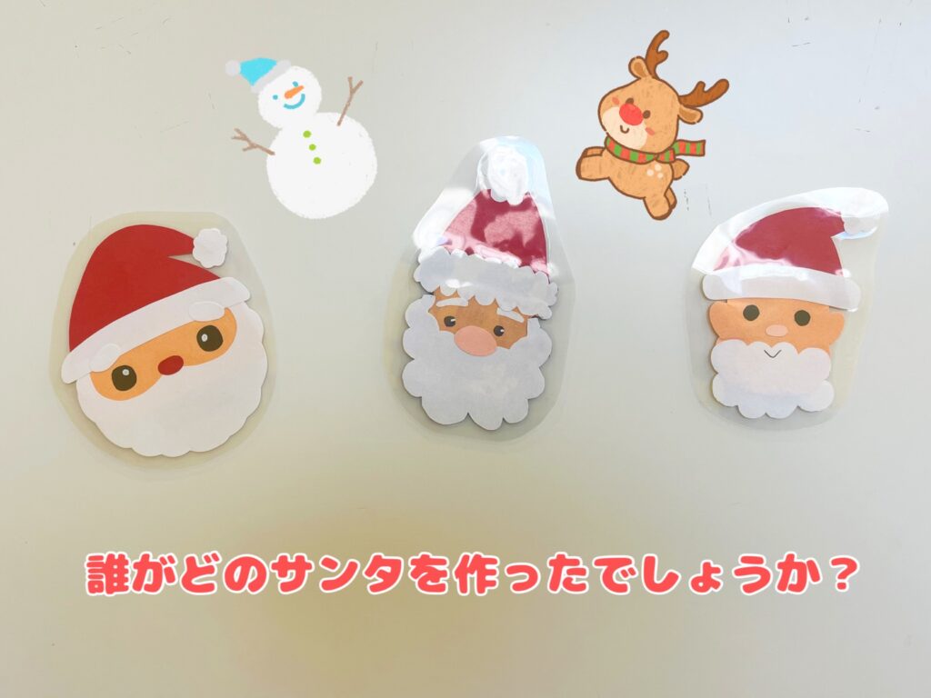 どの先生がどのサンタを作ったでしょうか?分かったらこっそり教えてくださいね👂