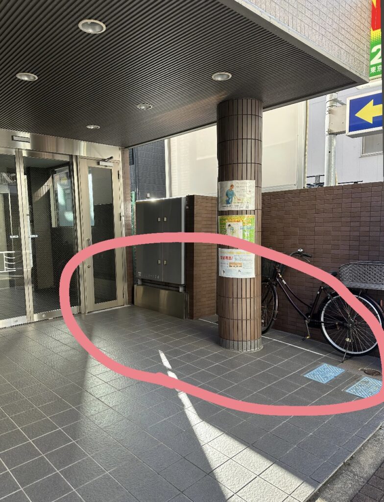 ビル真下、自動ドア前のスペースに駐輪が可能となっております!
